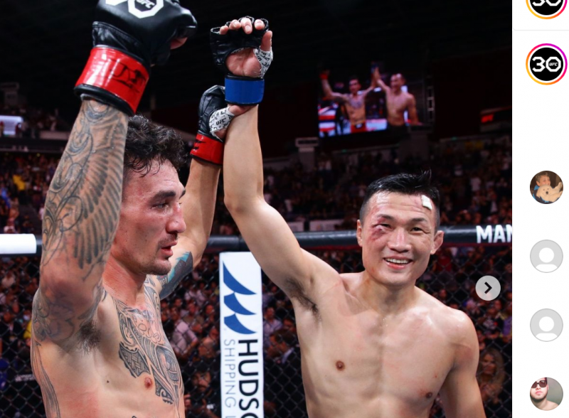 KO勝利したホロウェイ(左)、引退宣言したコリアンゾンビ(右)@ufc