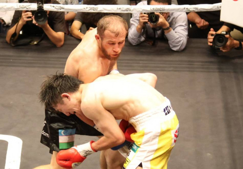 イスモリロフの強烈ボディ!井上が苦しむ