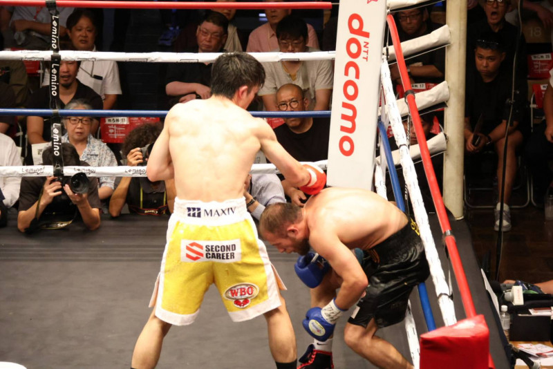 井上の右がクリーンヒット!1度目のダウンを奪う