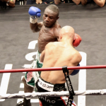 高速ジャブをヒットさせる松本
