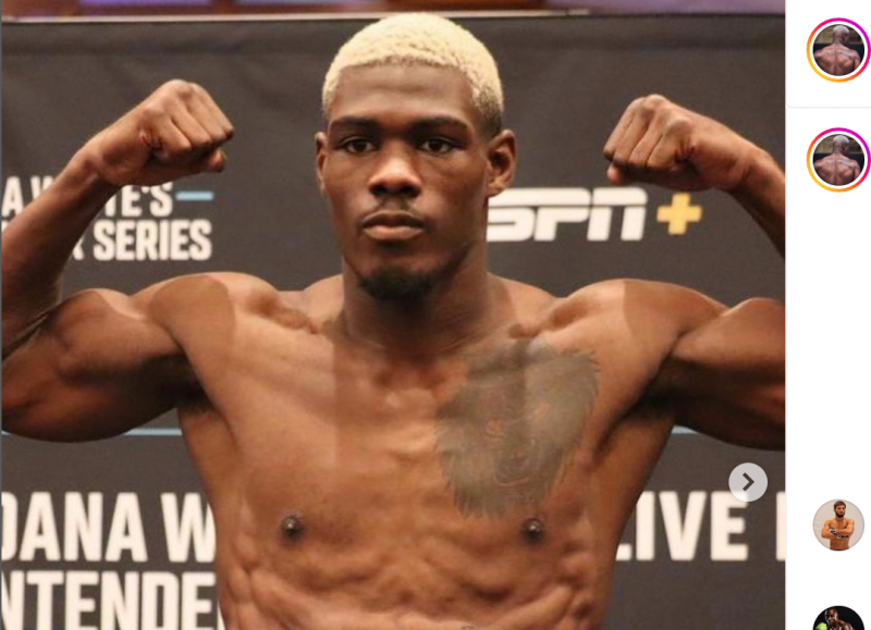 前日計量でマッスルポーズを決めるボラジ・オキ@oki_bolajiより