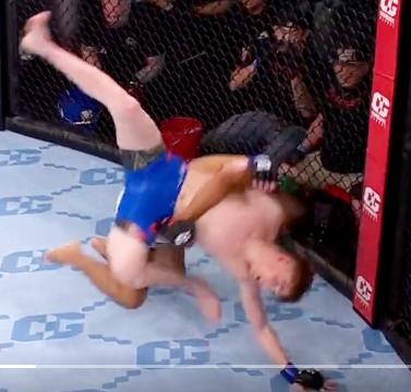 投げられたライシュマンの着地した左脚がくの字に@mmaboxing78より