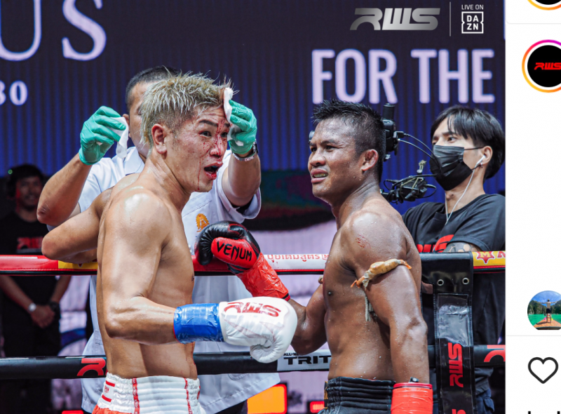 ブアカーオのヒジで大流血する城戸@rwsmuaythaiより