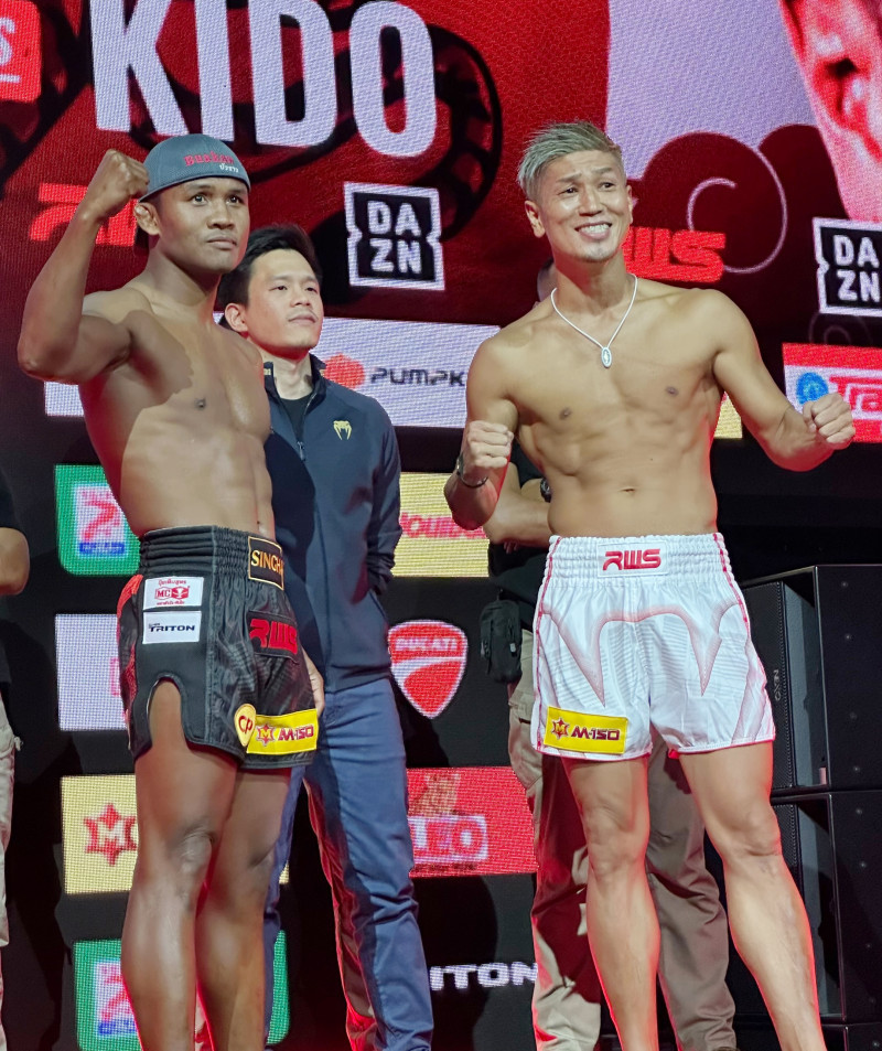 前日計量でブアカーオ(左)と城戸康裕が並ぶ