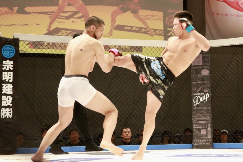 ミドルキックの梶本(右)