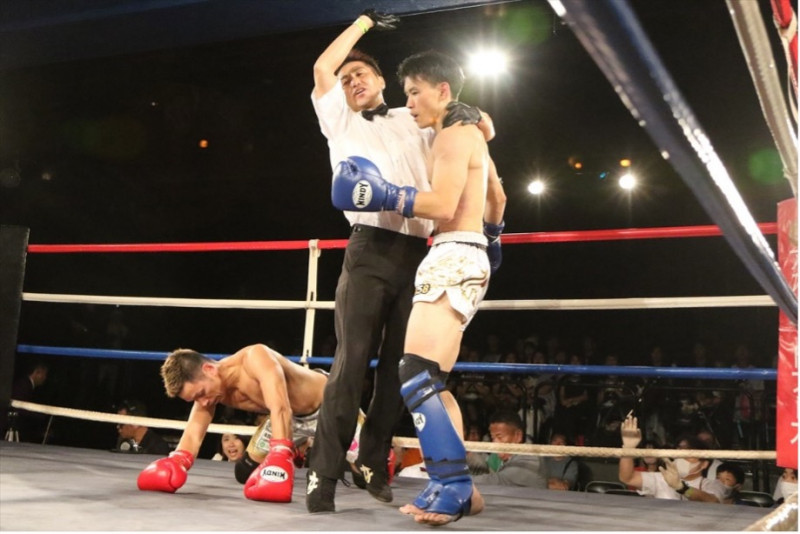 古徳(左)の2度目のダウンにレフェリーが試合を止めた