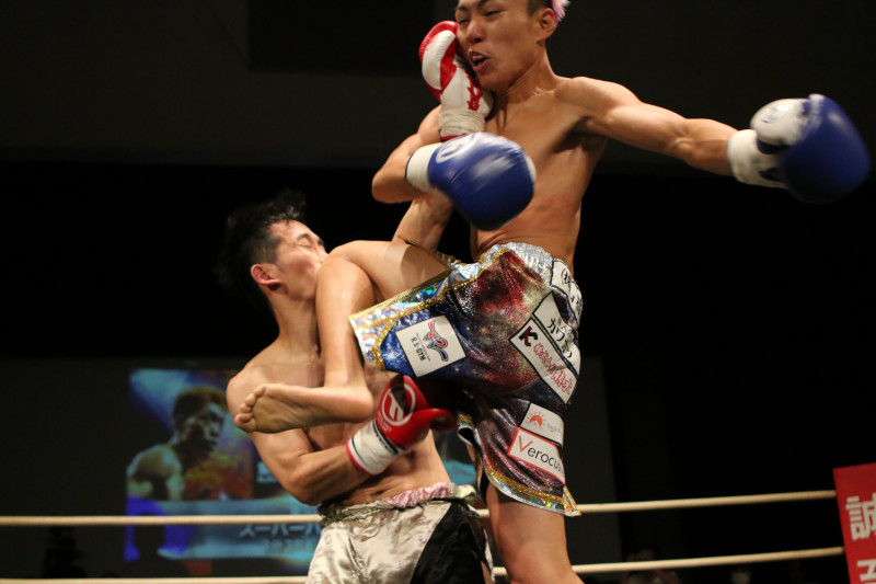 繁那(右)の飛び膝!