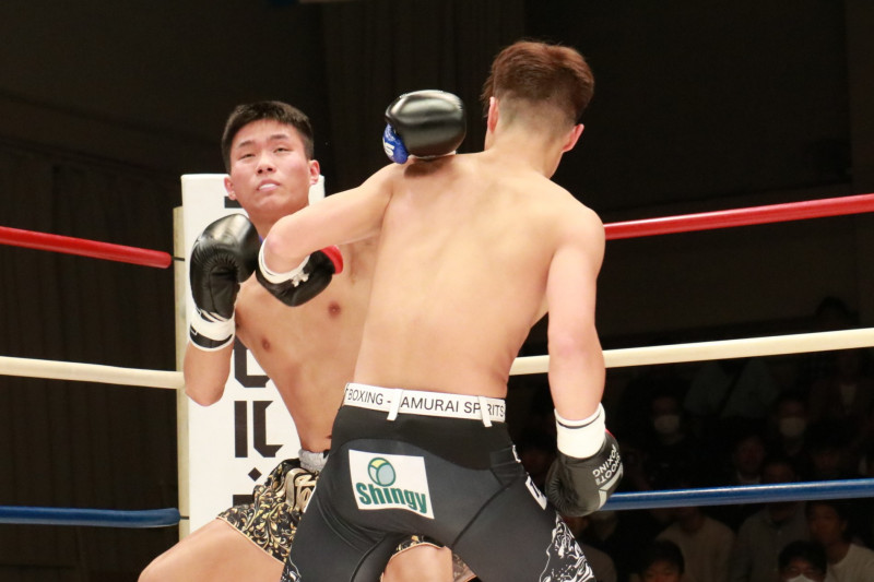 山田(右)が強打をヒットさせる