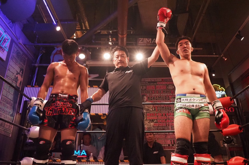キンコンカンコンケンチャンマン(右)がファック村尾に判定勝利