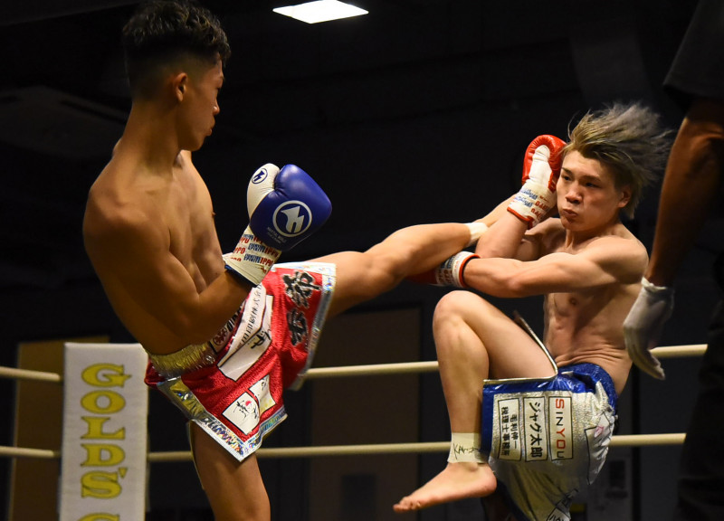 デビュー戦で冨永武聖(右)に判定勝ちした歩希(左)