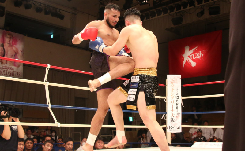 ブハリのヒザ蹴りがボディへ突き刺さった