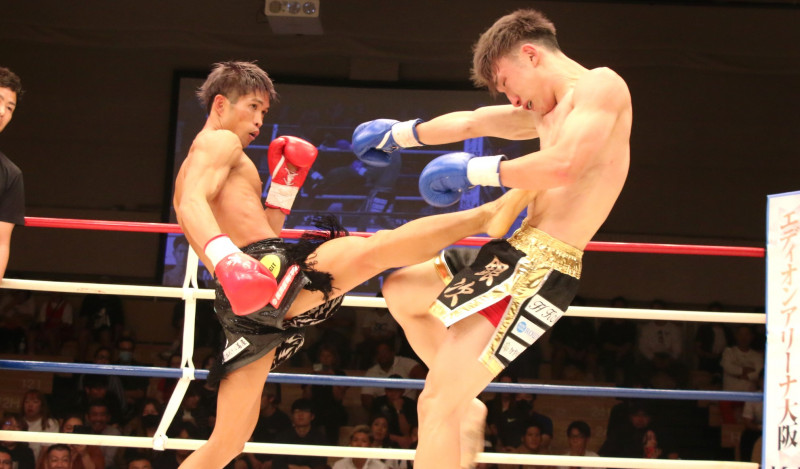 MOMOTARO(左)は、前蹴りを銀次(右)に決めていった
