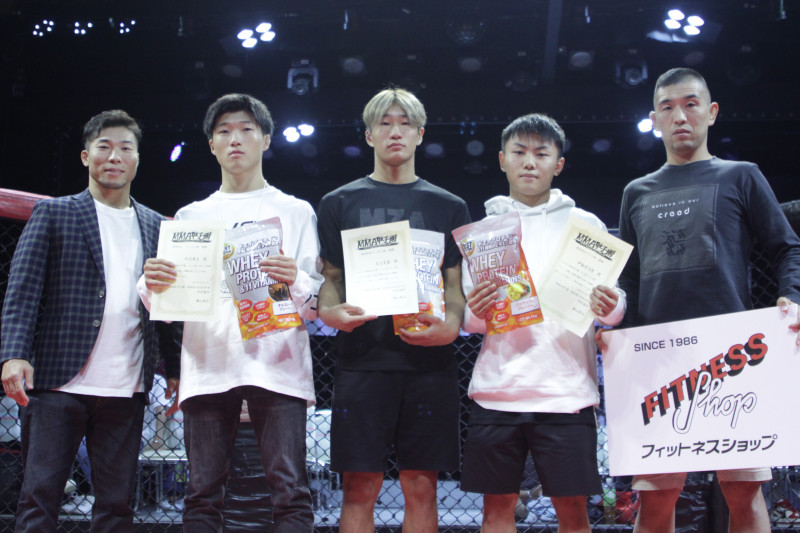 (左から)MMA甲子園関西支部長・中村優作、松元奏太、足立晃基、伊藤琥大郎、プロで活躍する鍵山雄介