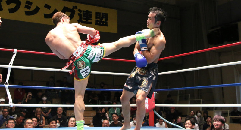 粘る鎌田に片島の右ハイキックが入りダウンを奪う