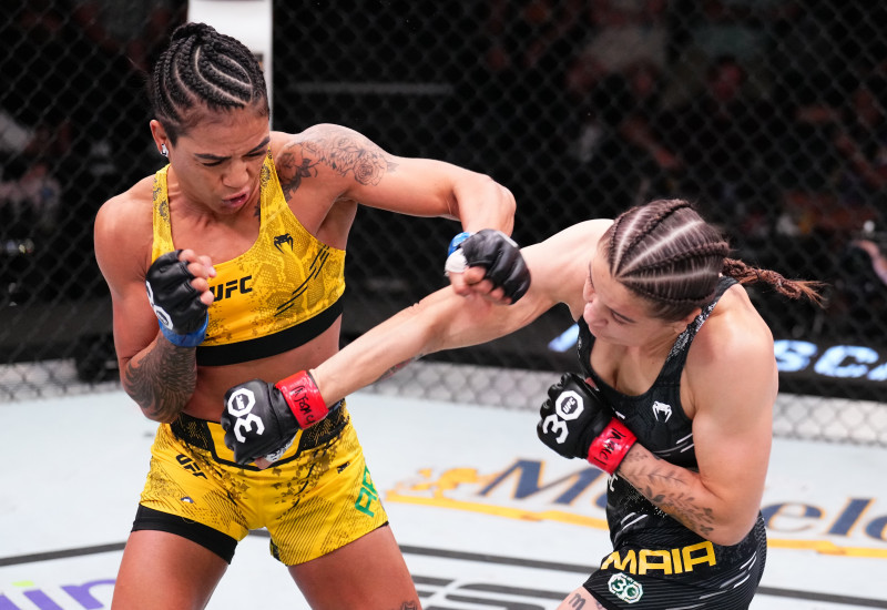 パンチで打撃戦を行うアラウージョ(左)とマイア(右)©️UFC