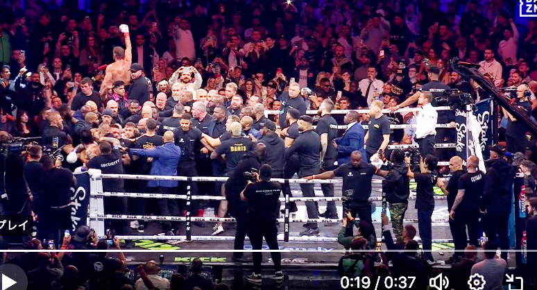 騒動の中、ローガンはコーナーポストえ勝利者ポーズ@DAZNBoxing