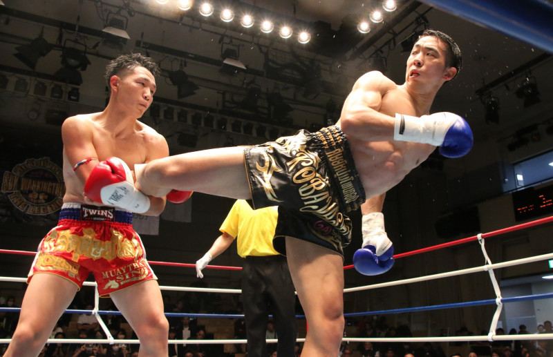 小林(右)は、リクシッソー(左)を下してスックワンキントーン ライト級王座を奪取