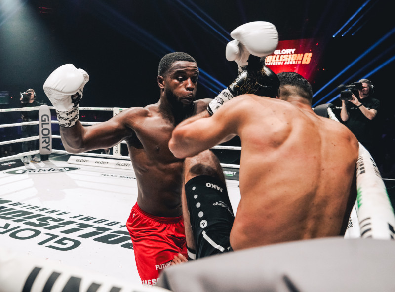 アベナがトシャッシーをロープに背負わせ圧勝(c)GLORY