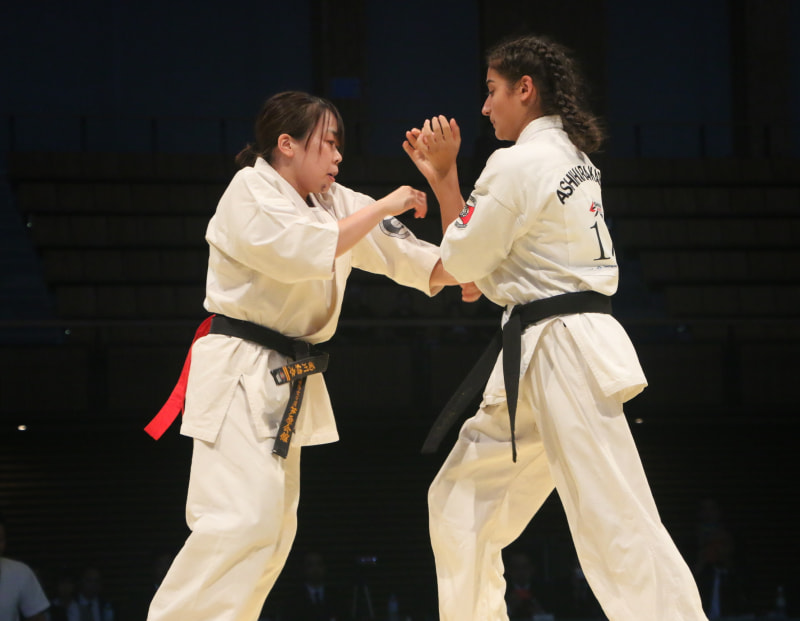 菊川(左)がパンチで攻めると相手は防戦一方