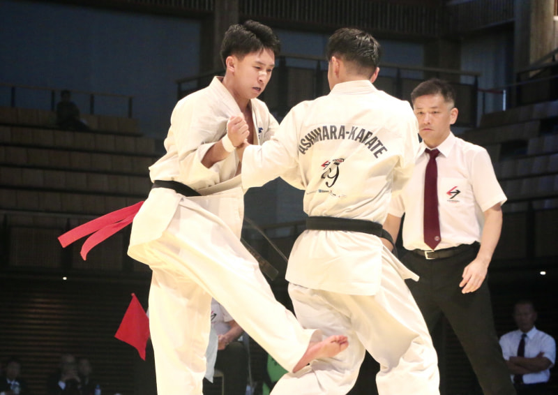 大石(左)がローキックで一本勝ちし悲願の優勝