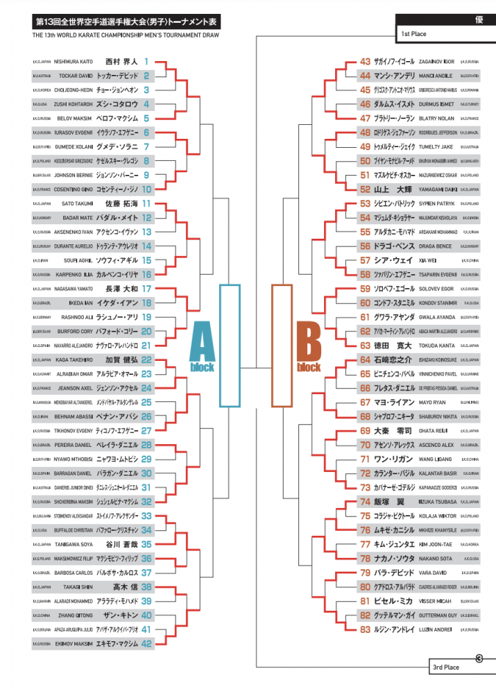 ABブロック2日目の勝ち上がり表(C)極真会館