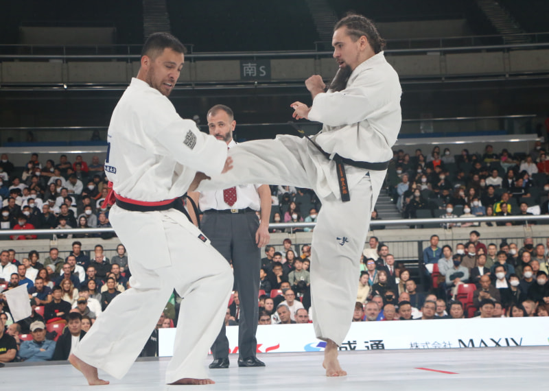 仏のヨーロッパ王者アントニオ(右)がこのミドルキックで一本勝ち
