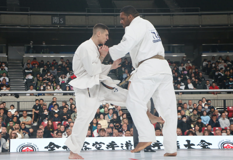2mの怪物イカロ(右)もロシア選手にカーフを効かされ敗退