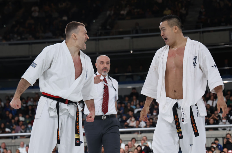 延長終了後、互いに大きな気合を入れる