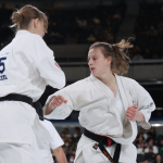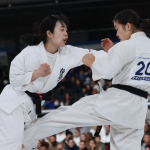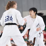 佐藤が鵜沢のパンチを捌き攻撃へ!有効打だけでなく、防御からいかに有効打に結びつけたかも判定基準だ。