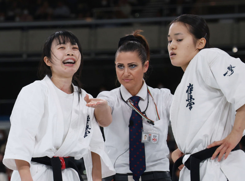 再延長3−2の僅差で佐藤七海(左)が世界初制覇、昨年全日本優勝の鵜沢菜南に競り勝った