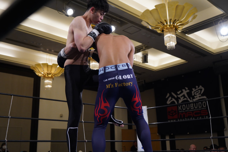 竹山和貴(右)との延長戦を制した荒尾佑太(左)