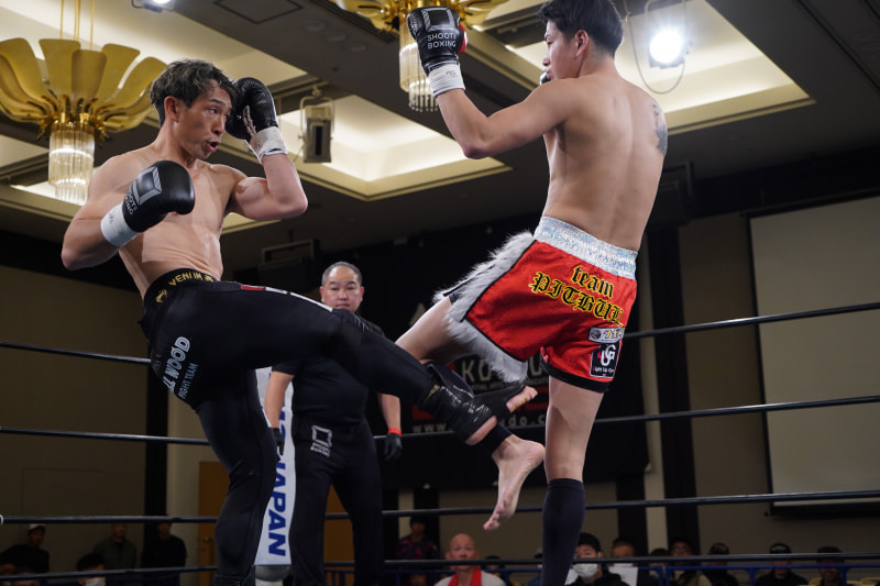 田中秀汰(右)に判定勝ちした金子徹哉(左)