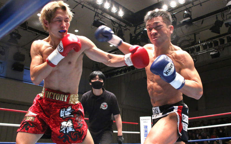 ジャパンキックvsNJKF交流戦は、睦雅(左)が健太(右)をTKOで下した