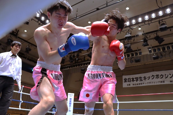 小野(右)の右ストレートが宮谷のアゴを捉える