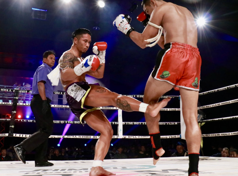 柿沼が序盤に右ローを入れる