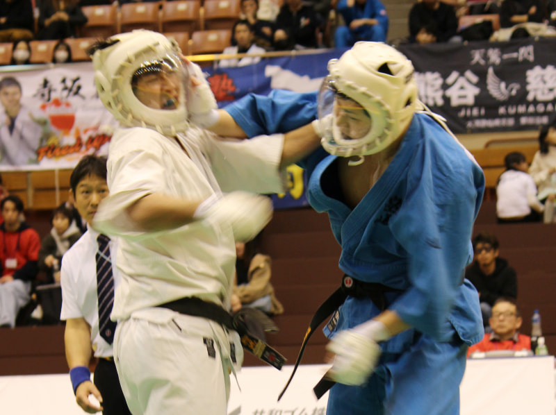 掌底で顎を打ち抜く辻野