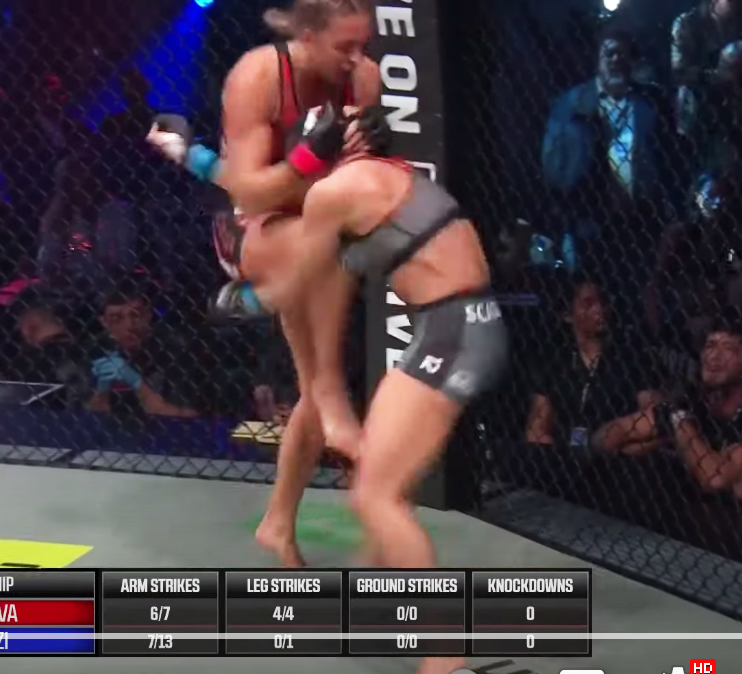 強烈なヒザ蹴りを当てるディチェバ(PFLMMA公式YouTubeより)