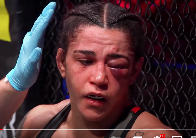 スカティジの左目が大きく腫れ上がる(PFLMMA公式YouTubeより)
