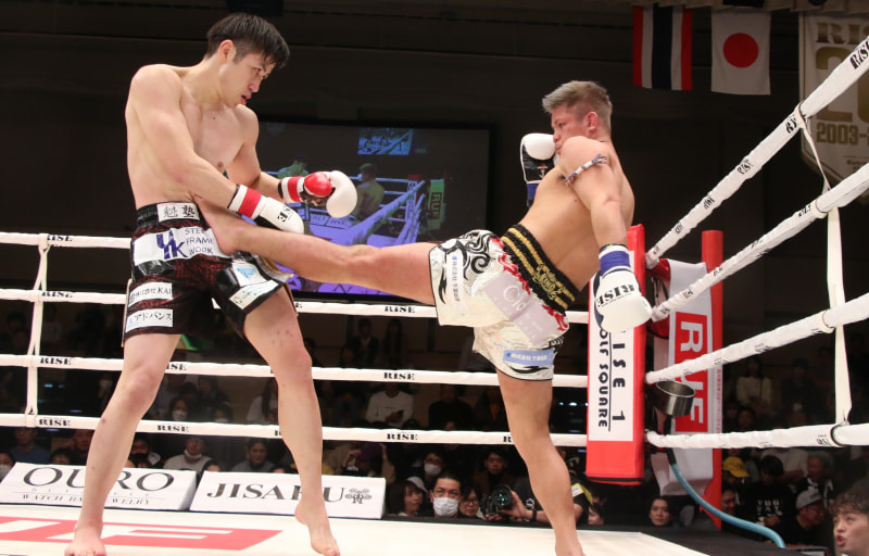 フランクちゃん(右)は左の蹴りと左フックで勝負した
