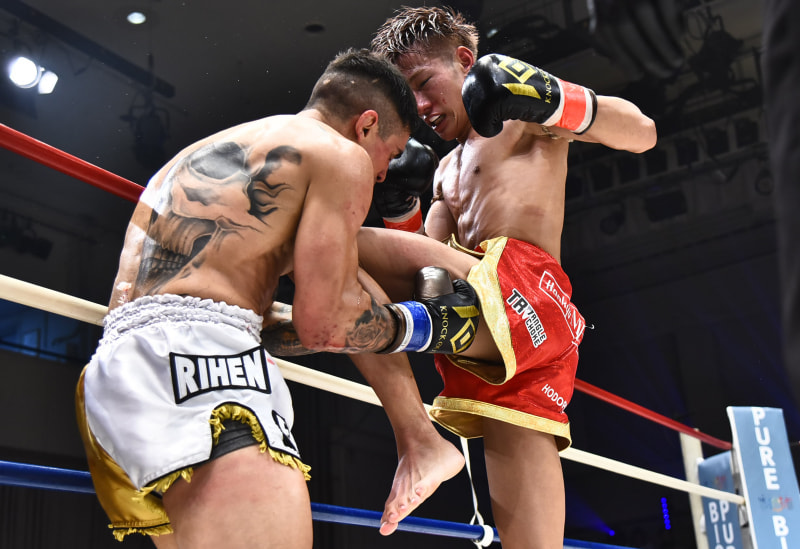 左の飛びヒザ蹴りでKO勝ちした龍聖