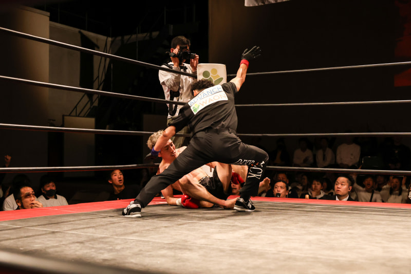 レフェリーが試合を止めた