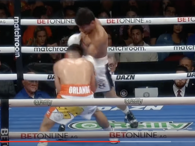 6R、相手がダッキングのように沈み込んだ瞬間に合わせアッパーが炸裂!これは見えない(c)DAZN
