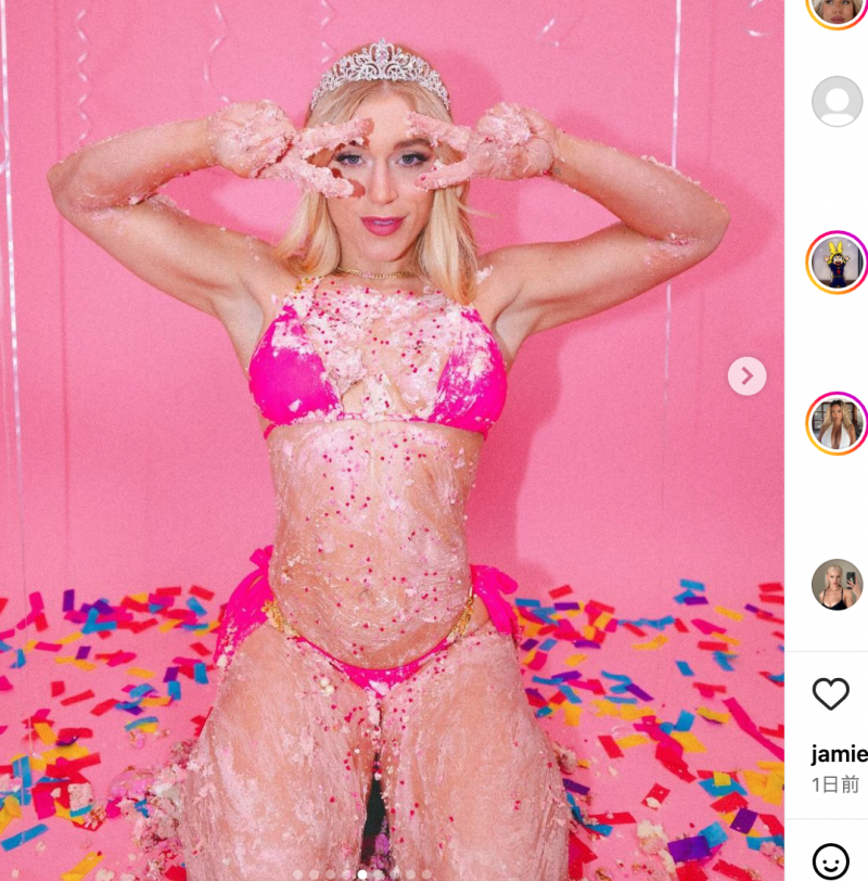 ケーキを全身に塗り、ダブルピースサイン@thedumbledongより