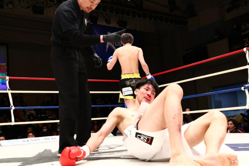 2R、塚本の右ストレートでダウンを喫する近藤