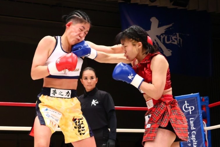 麻央はパンチのコンビネーションで池内を攻め立てる