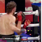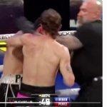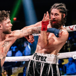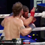 リバーの猛ラッシュでペレスはほぼ背を向けた状態@bareknucklefc