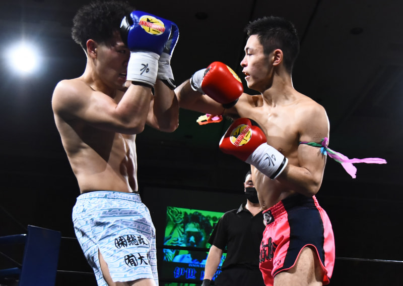 伊世(左)からヒジによるカットでTKO勝ちした弘(右)