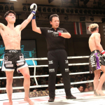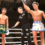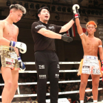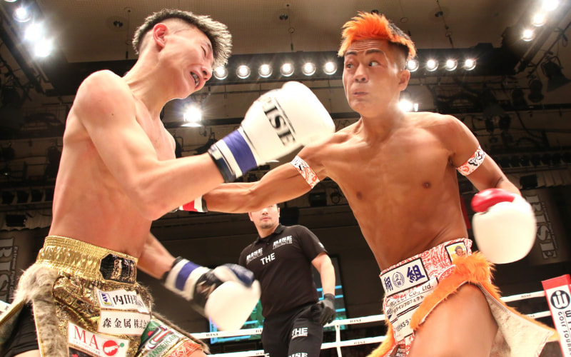 塚本(右)がダウンを奪い、JIN(左)を判定で下した