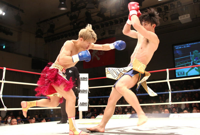 横山は左ストレートを決めてダウンを奪った
