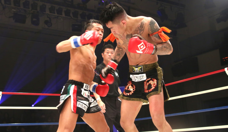 健太は右のパンチでダウンを奪った